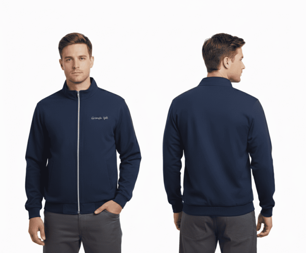 Acabamento Funcional: Design com fechamento em zíper frontal e punhos elásticos, garantindo ajuste seguro e visual esportivo profissional.